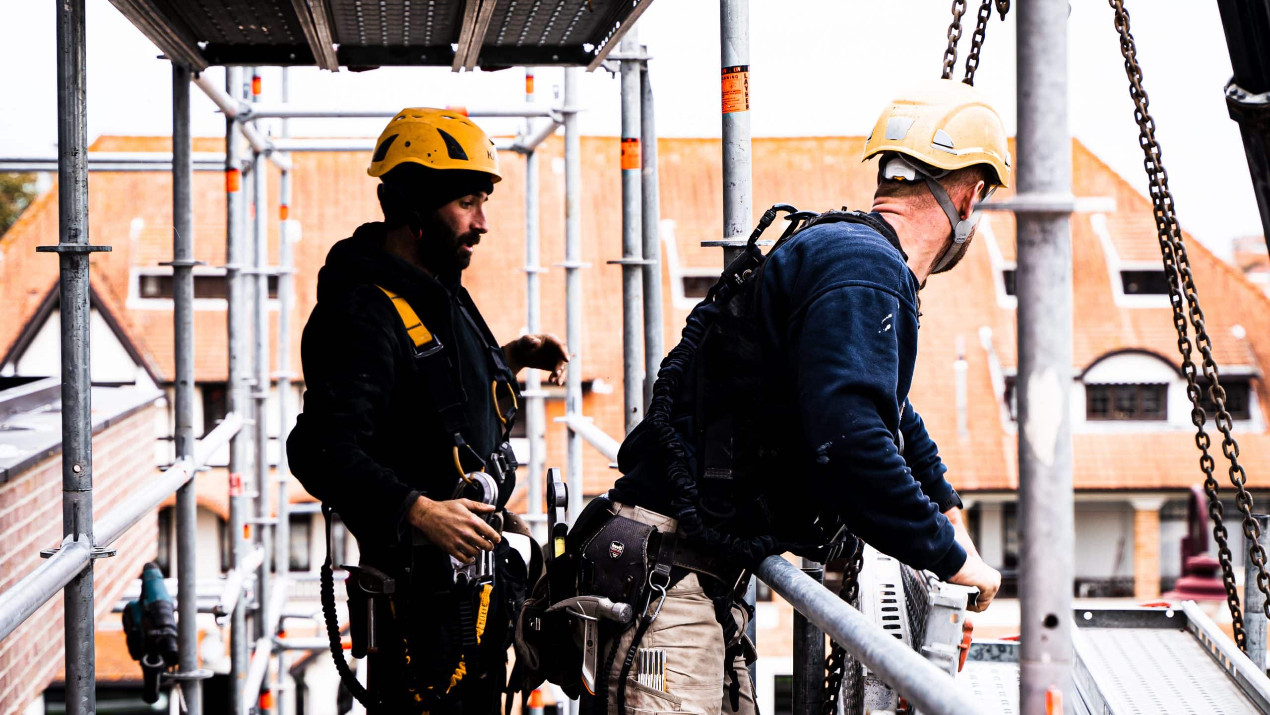 Op daken gaan is veiligheid altijd prioriteit. Zo zorgen we voor een stelling met anti slip, houten voetstops en indien nodig ook netten.